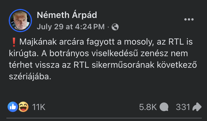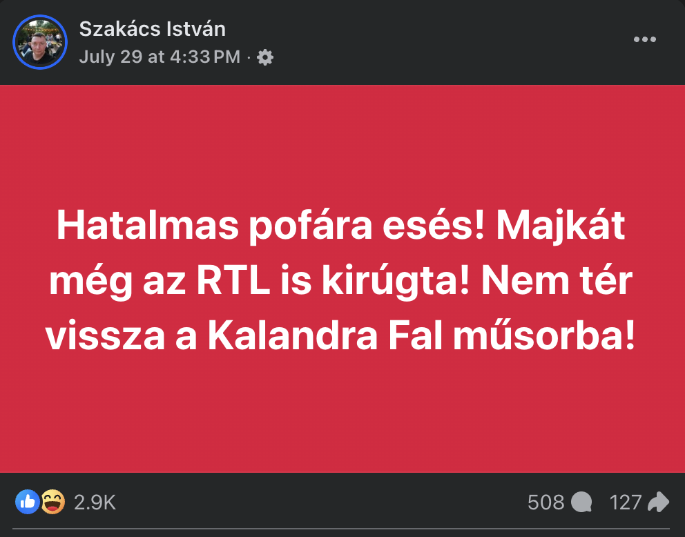 The rumor is based solely on the fact that the rapper and television presenter from Ózd will not be returning as host for the next season of the reality show Kalandra Fal! However, several pro-government social media figures immediately portrayed this personnel change as if RTL had completely severed ties with him.