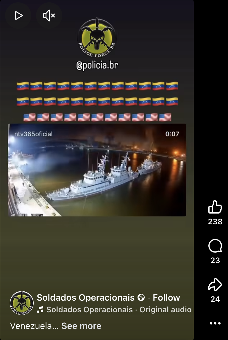 Ezekkel párhuzamosan egy másik félrevezető tartalom is terjedni kezdett, amely szerint egy biztonsági kamera felvétele rögzítette a bombázást Venezuela egyik kikötőjében. A videó több szempontból is gyanúra ad okot, a képsorokon például az látható, hogy a bal oldalon egy ember teljes nyugalommal sétál, miközben a kikötő másik részét állítólag rakétatámadás éri. Emellett a hajókat megvilágító fényforrások sem viselkednek következetesen. A leginkább árulkodó jel azonban az, hogy alaposabban megvizsgálva a felvételt jól látható, a képsorokon egy orosz zászlóval ellátott hajó szerepel, így ez a felvétel sem köthető sem Maduro elfogásához, sem az amerikai hadművelethez.